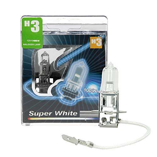 ECD Germany 2 Stück Halogen Scheinwerferlampe H3 6000K Weiß W12V 100W 200 Lumen, Glühbirne Birne Glühlampe Autolampe Lampe, einfache Installation