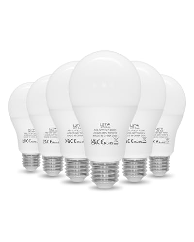 LUTW E27 LED Lampe, 12W LED Birne ersetzt 100 Watt Glühbirne E27, 4000 Kelvin Neutralweiß A60 Leuchtmittel 1200LM, 220° Abstrahlwinkel Energiesparlampe, Nicht Dimmbar, 6 Stück
