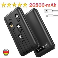 Powerbank 26800mAh 22,5W mit integriertem USB Kabel portables Ladegerät 4-IN-1