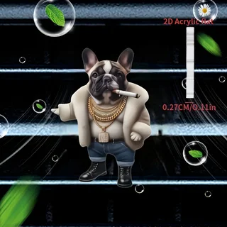 【2D flach】French Bulldog Boss Air Vent Car Freshener, 2D Acryl Air Vent Clip, duftlos, Auto-Innendekoration